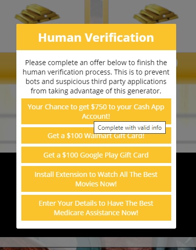 After clicking the download / generate button, you will likely be prompted for verification. Choose one of these offers, you can check out a few and see which one suits you. You have several offers to choose from – sending a text message, downloading and playing a game. There are also regular questionnaires you must complete.